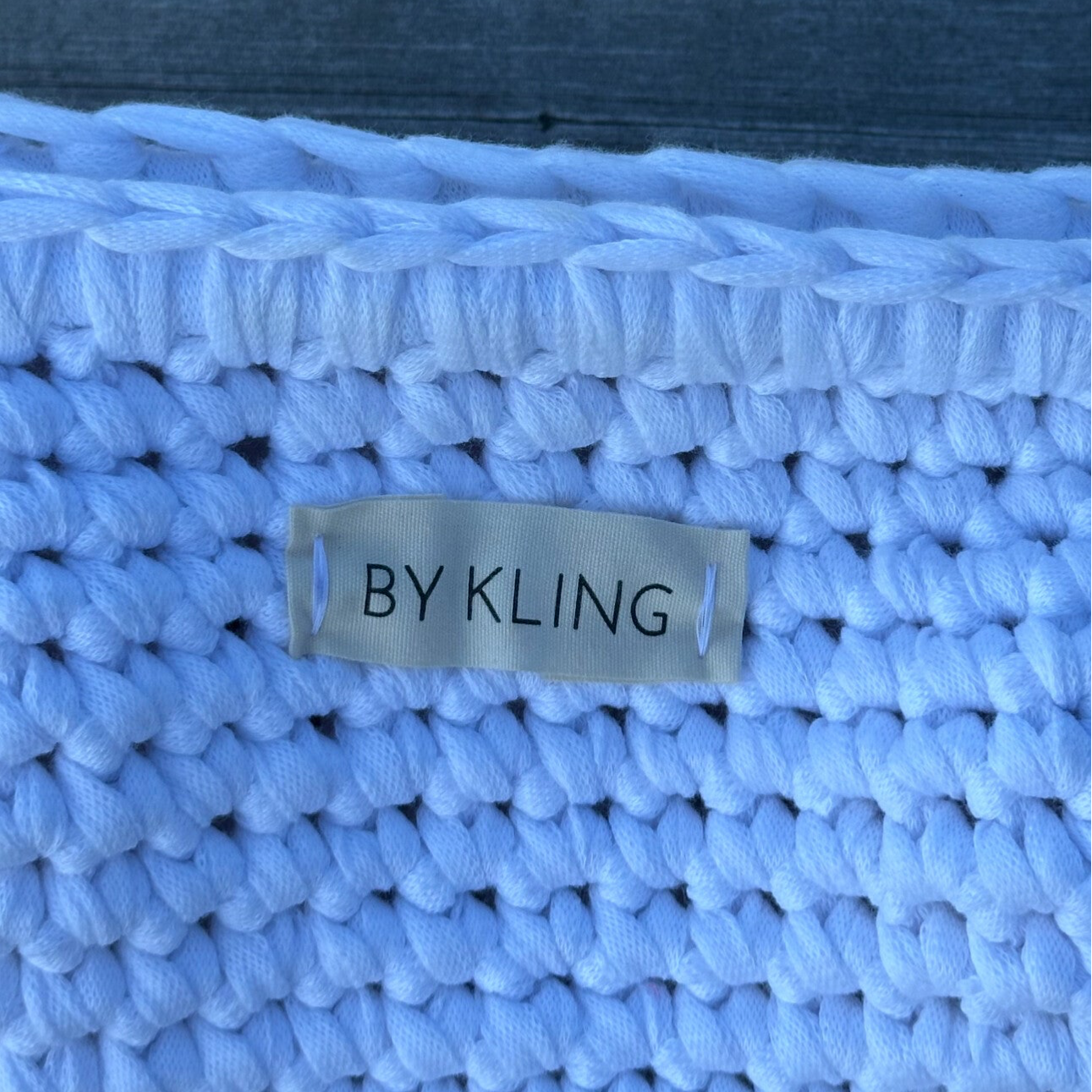 Stilren och somrig clutch, virkad för hand i 100% bomull. Den har en stadig metallbåge som gör den enkel att öppna och stänga. Perfekt som necessär eller liten väska till vardag och fest.